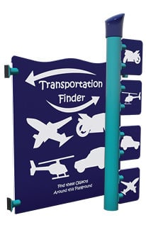The Transportation Hide & Seek Activity Panel Set will help children recognize international travel icons. Includes four transportation-themed panel toppers and a playground activity panel. Available in multiple solid and sandwich panel colors.