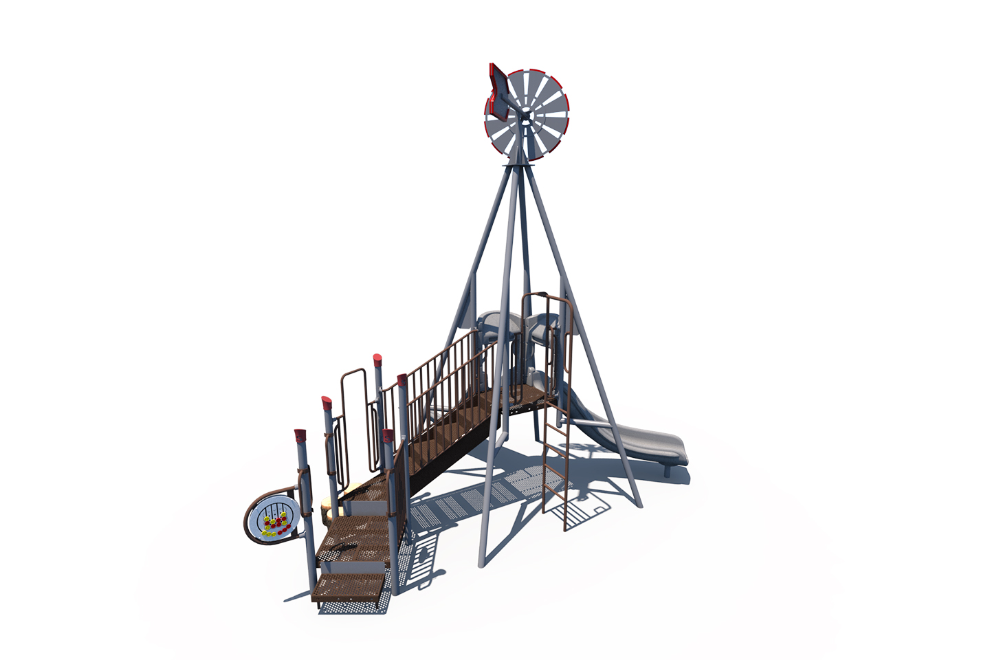 This windmill-themed playground makes a great addition to any play space. As part of our themed economy series, this play structure is designed with 3.5-inch posts to save money and space. This structure features fun slides, climbers, and play panels for endless fun.
