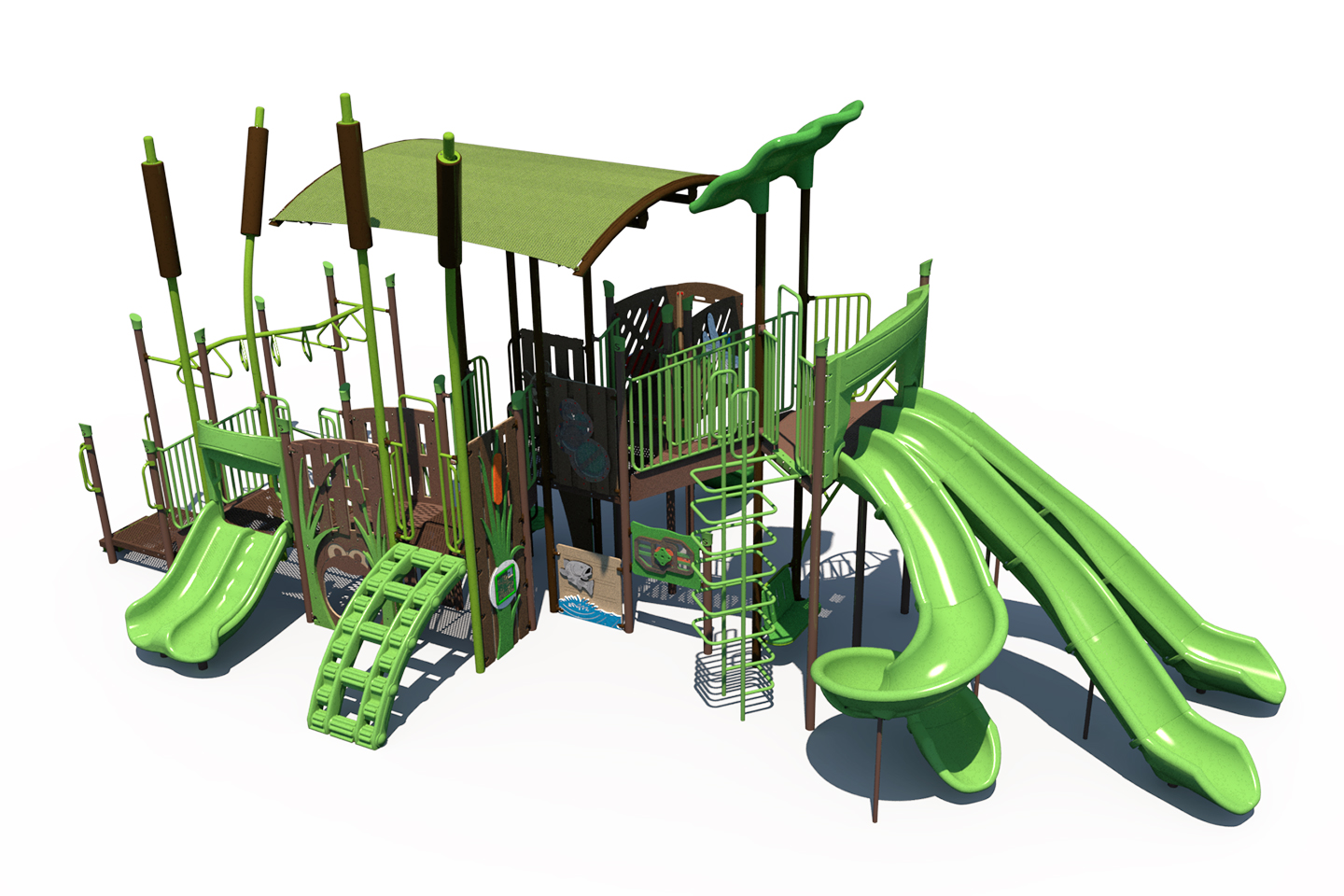 This marsh-themed playground makes a great addition to schools and parks. It's designed for children ages 5-12 years old.