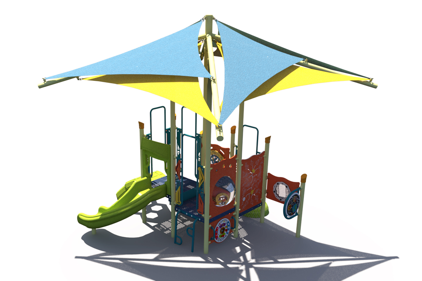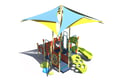 Looking for a modern playground? Check out the FX3-PRF-205-0062. This playground is compact while adding a modern look and lots of play value to your space. It's designed with fun and challenging climbers, slides, and panels for children in the 2-5 age group. The integrated shade helps protect children and equipment from harmful UV rays.