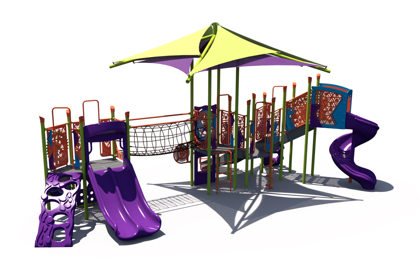 Add lots of play value with the FX3-PRF-512-0056. This shaded playground features age-appropriate slides, climbers, and panels for children in the 5-12 age group. The integrated shade helps provide shade to both children and equipment.