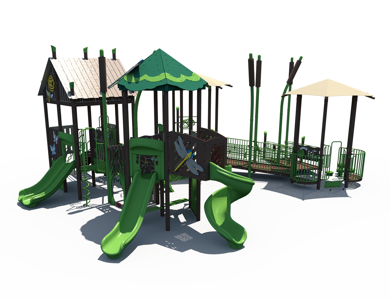 The FX5-MAR-512-0373 is a nature-themed playground for children ages 5-12. This play structure features multiple slides, panels, and climbers that allow plenty of fun play opportunities. This nature playground is suitable for community play areas such as park playgrounds, church playgrounds, or schools.