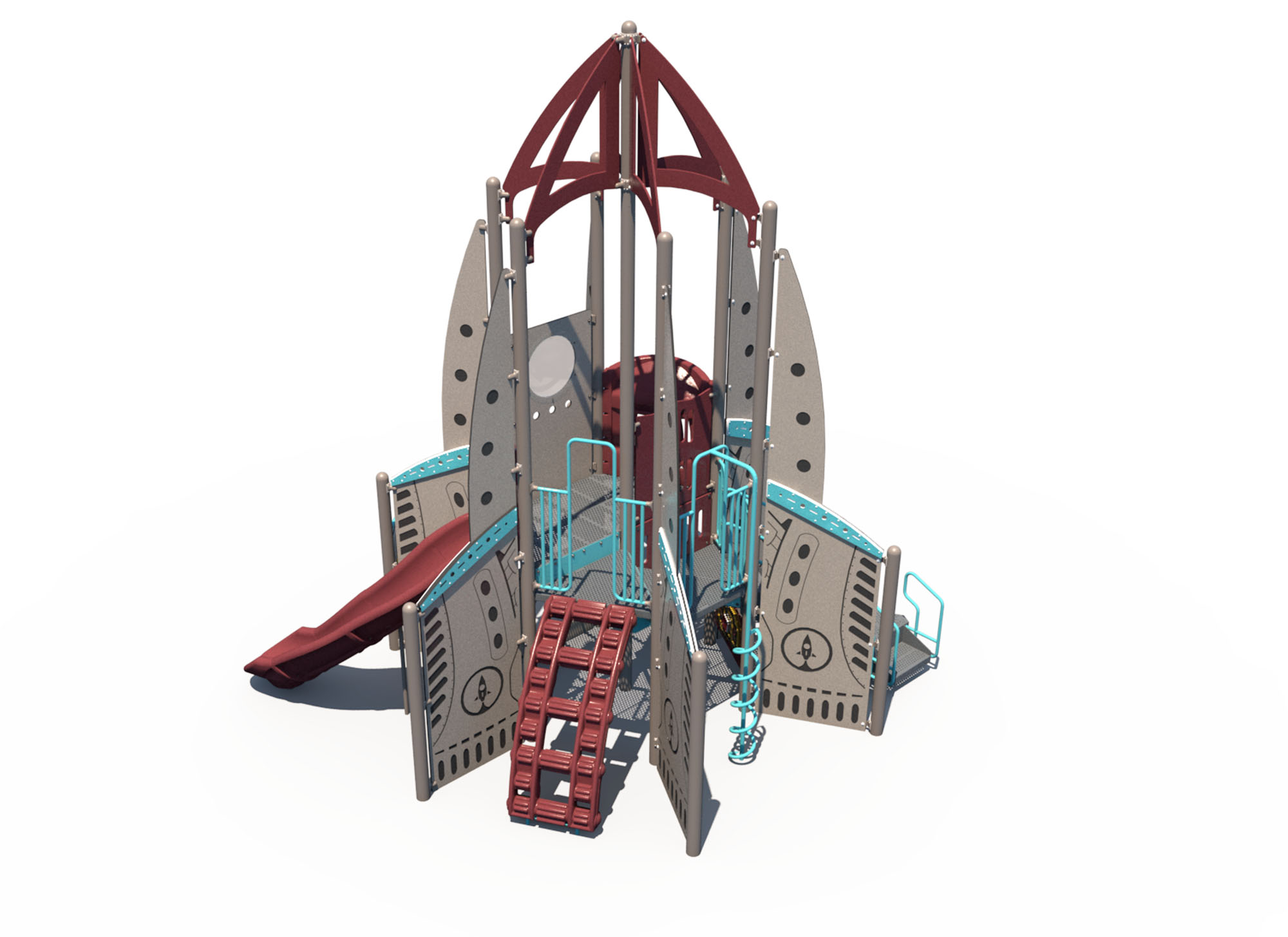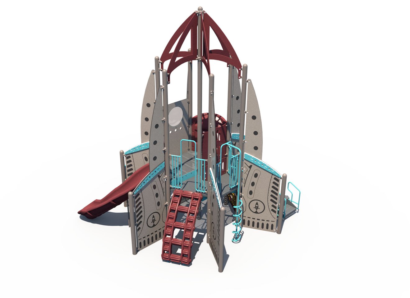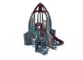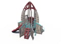 Blast off into space with this rocket-themed playground for children ages 5-12 years. This playground features two slides, multiple climbers, and fun activity panels (including a Mission Control panel!).