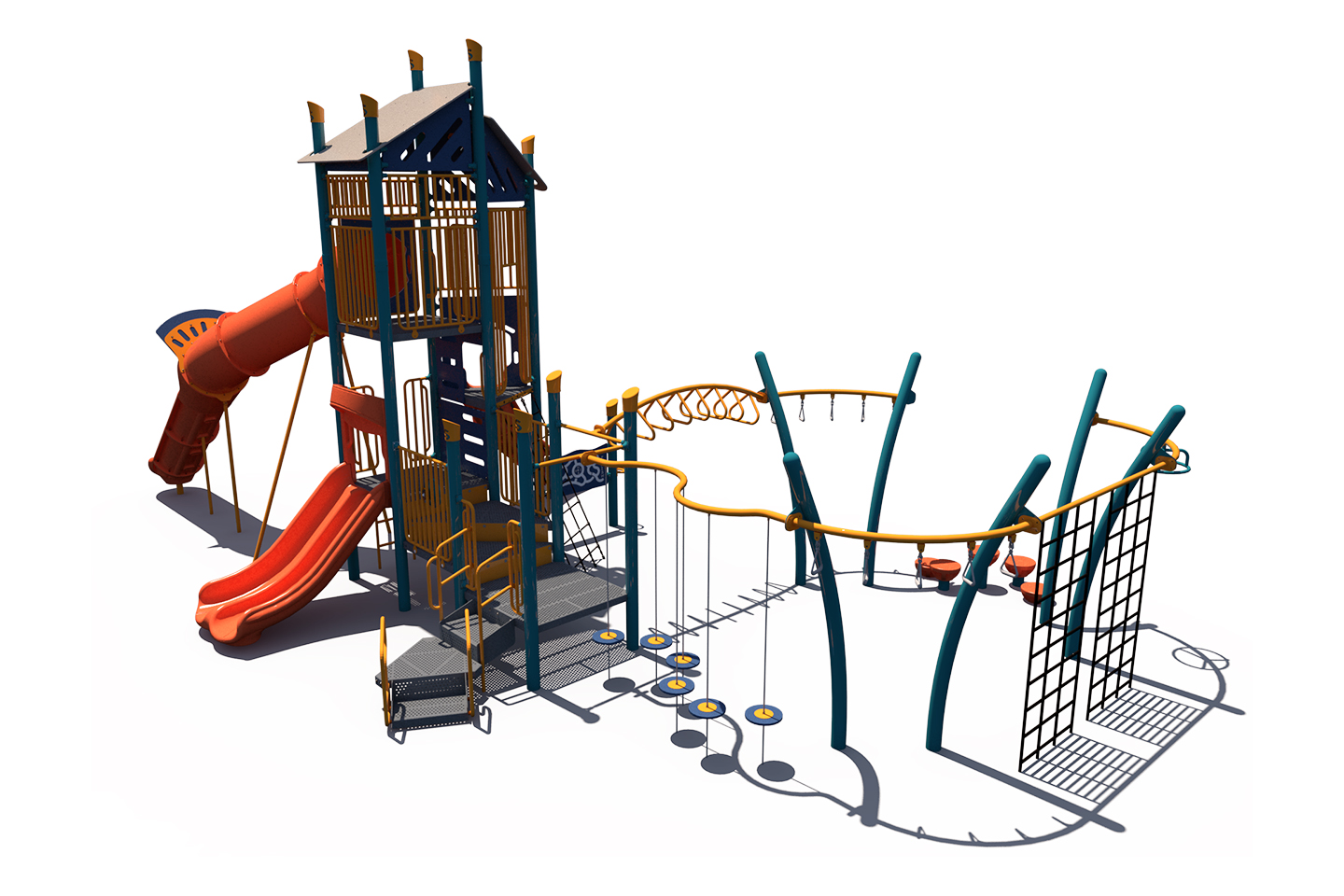 Looking for a tower playground? Consider the FXT-GEN-512-0110. It's a steel tower structure that features multiple age-appropriate challenges for children ages 5-12.