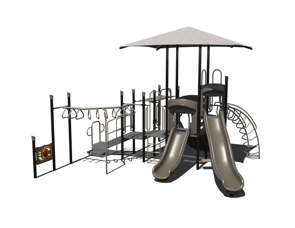 The PS3-70564 provides children with multiple options of physical play and childhood development while providing shade to protect against harmful UV rays. The structure is equipped with a 90-degree tri rung horizontal ladder along with a straight rung horizontal ladder giving children two climbing routes. In addition, the structure has a deep rung arch climber that allows climbing access to the wave slide. This structure is the perfect addition to your elementary school or local recreational park. Explore the different color options to create the perfect play space.