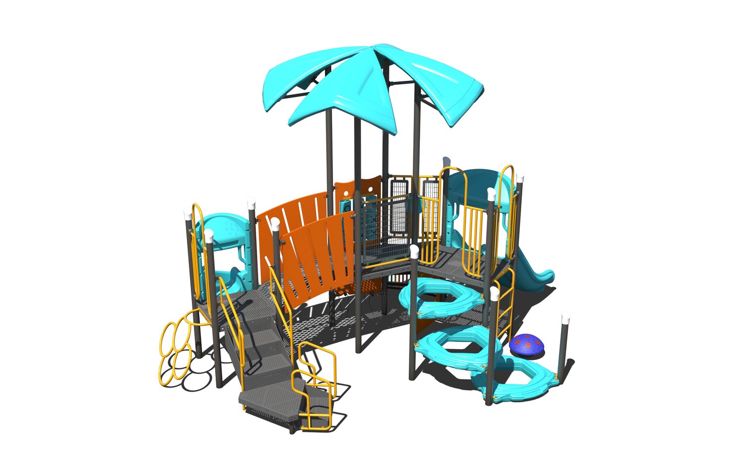 The PS3-71672 is a steel outdoor playground designed for children ages 2-5.