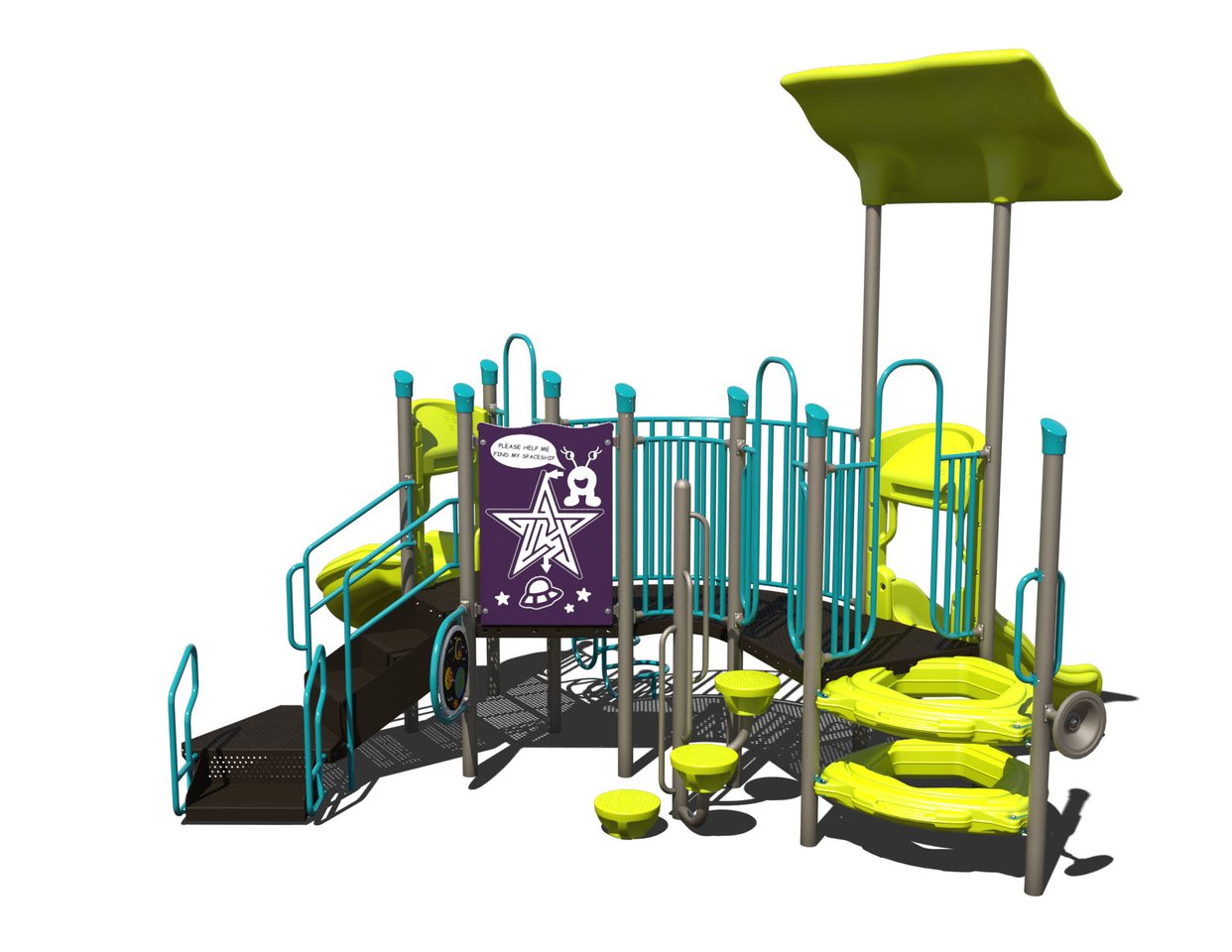 This commercial playground designed for children ages 2-5 is a great option for small spaces and budgets.