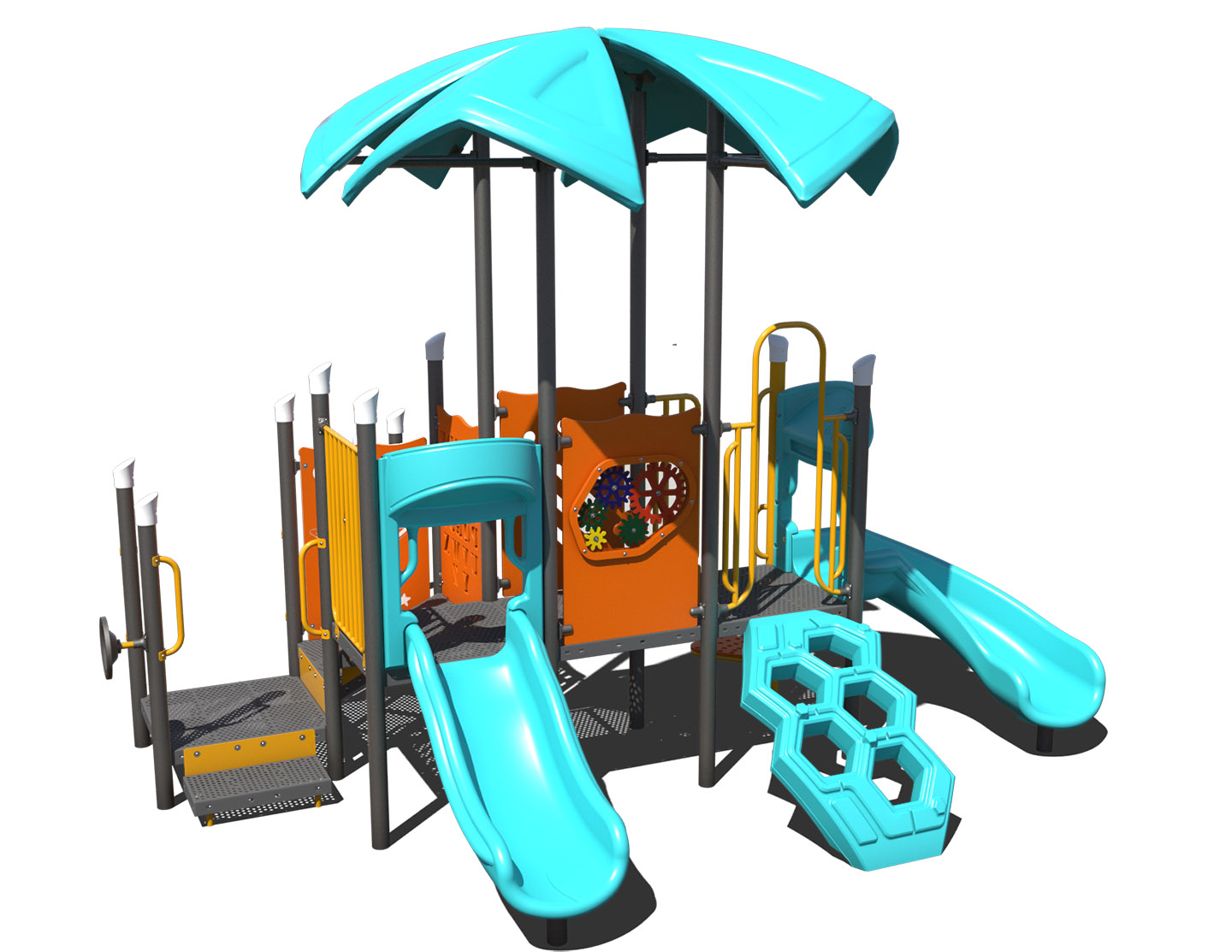 This vibrant playground for children ages 2-5 offers multiple slides, engaging interactive panels, and exciting climbers to inspire endless fun and active play.