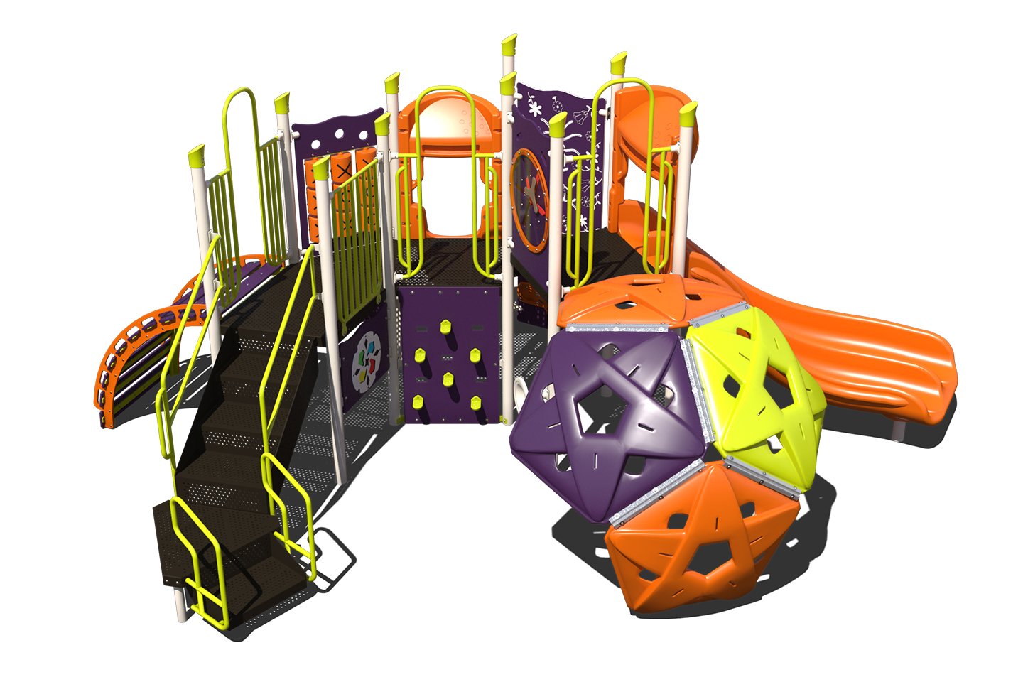 PS3-73448-1 delivers a high-quality play experience in a small, efficient design. Children can enjoy hands-on fun with themed panels like the Flower Slider, Iris Panel, Bongo Panel, and Tic-Tac-Toe—all designed to support sensory exploration and group play. The mini arch climber offers a manageable physical challenge for younger kids, while the slides provide exciting movement and active fun.