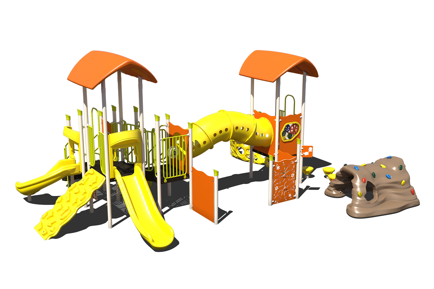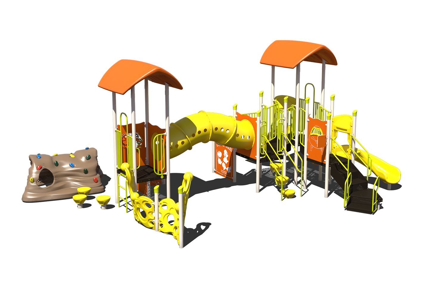 The PS3-73585-2 is a fun and exciting outdoor playground. It makes a great addition to any park or school. It features age-appropriate climbers, slides, and panels at deck and ground level.