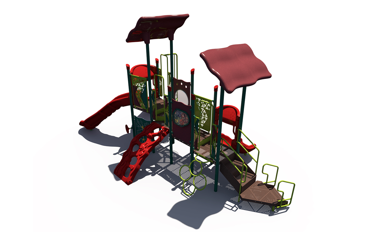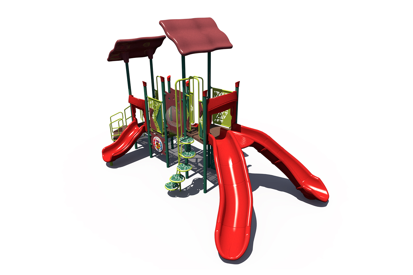 The PS3-73658 is a compact playground that offers great play value. Children ages 2-12 will have nearly endless fun exploring the climbers, slides, and play panels at ground and deck level.