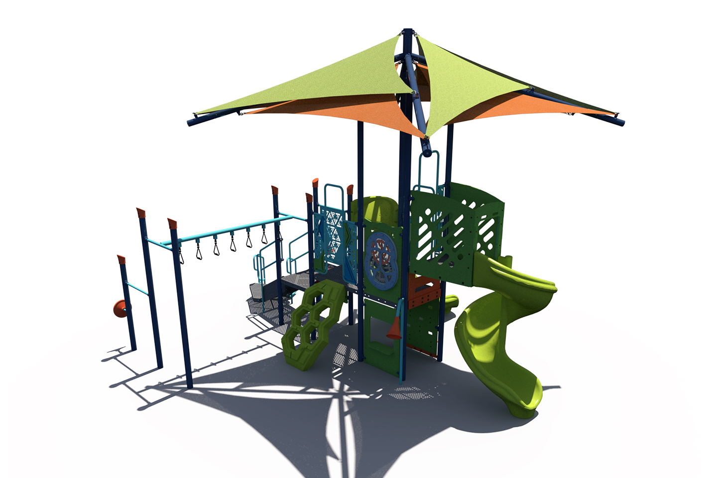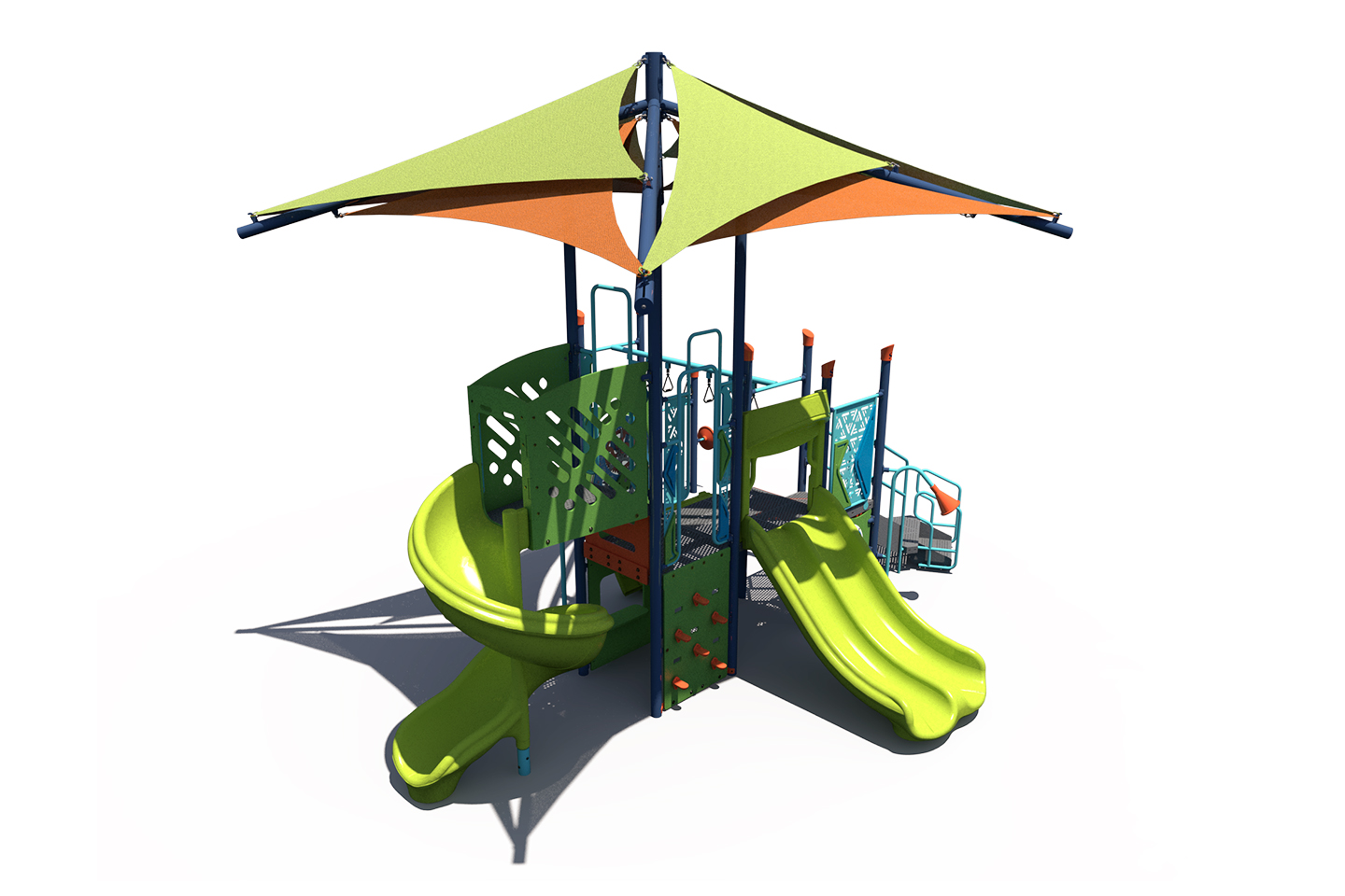 Looking for a modern playground? Check out the PS3-73660! It's designed with age-appropriate climbers, slides, and panels for children in the 5-12 age group. The integrated shade also helps protect children and equipment from harmful UV rays.