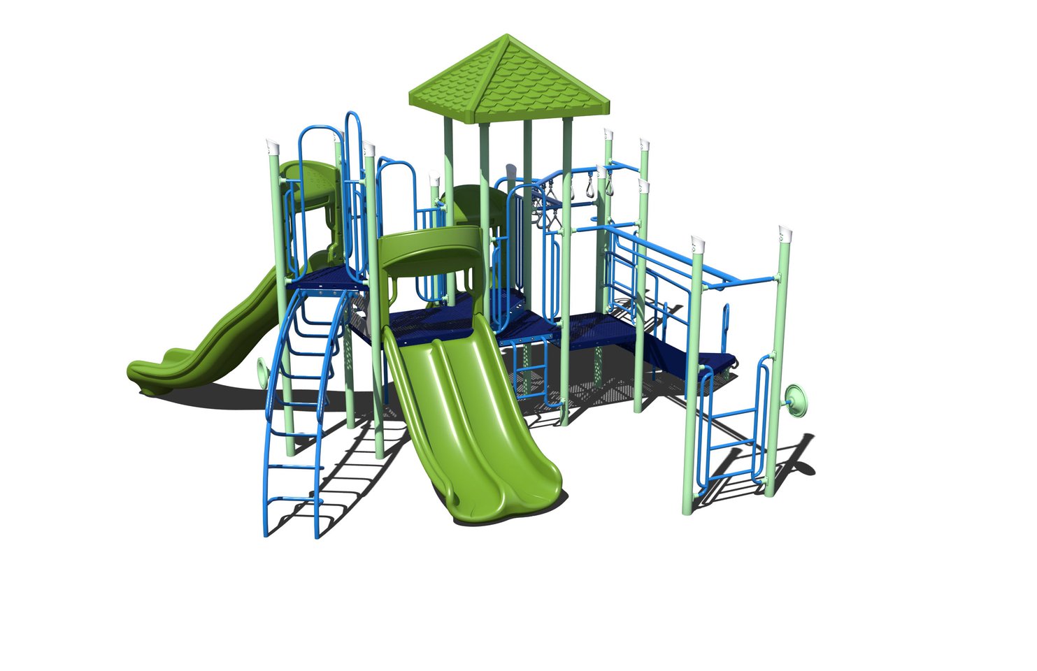 If you'd like to get children ages 5-12 years active, our PS3-73775 playground may be a good fit. This commercial playground features two overhead ladders to help build body strength, three slides, multiple climbers, and more.