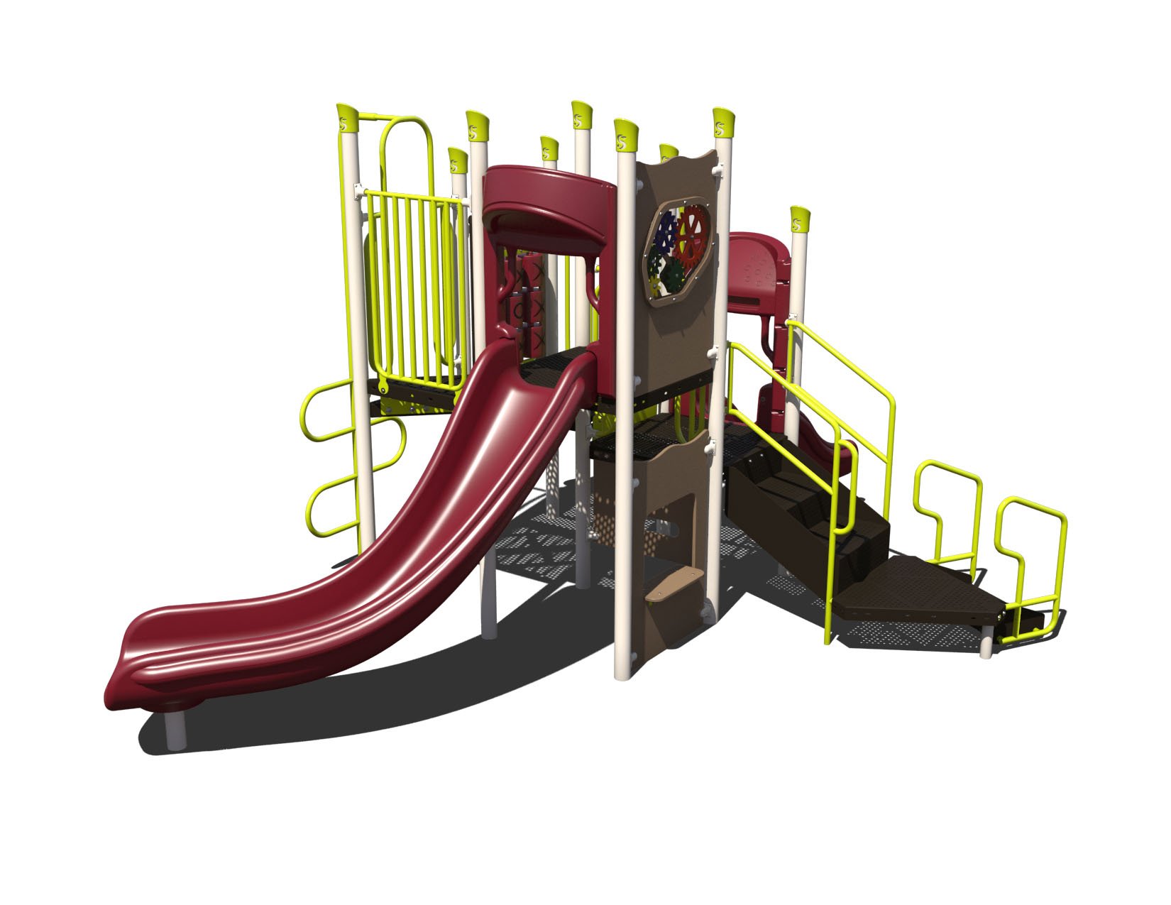 If you're looking for a playground for a tight space and that is designed for children ages 2-12 years, the PS3-73880 is for you. This four-deck playground features two slides, one climber, three activity panels, and a post-mounted steering wheel.
