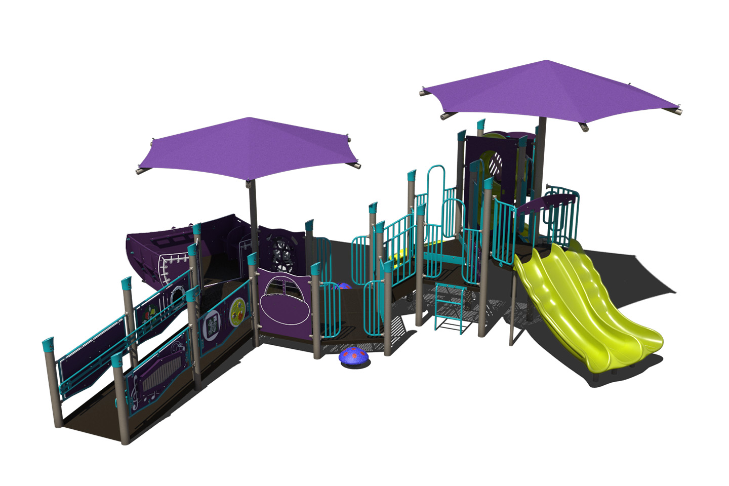 Looking for an inclusive playground? Check out the PS5-73384. This ramped play structure provides access to meaningful play activities to children of all abilities. The integrated shade helps protect children and equipment from the sun's harmful UV rays. It's great for the 5-12 age group.