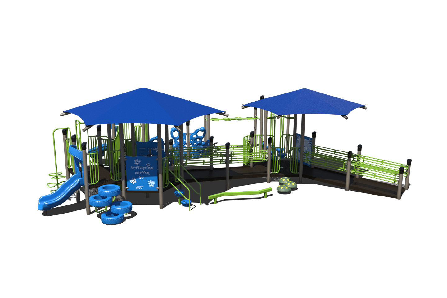 The PS5-73558 is an inclusive playground featuring a wide ramp and integrated shade.