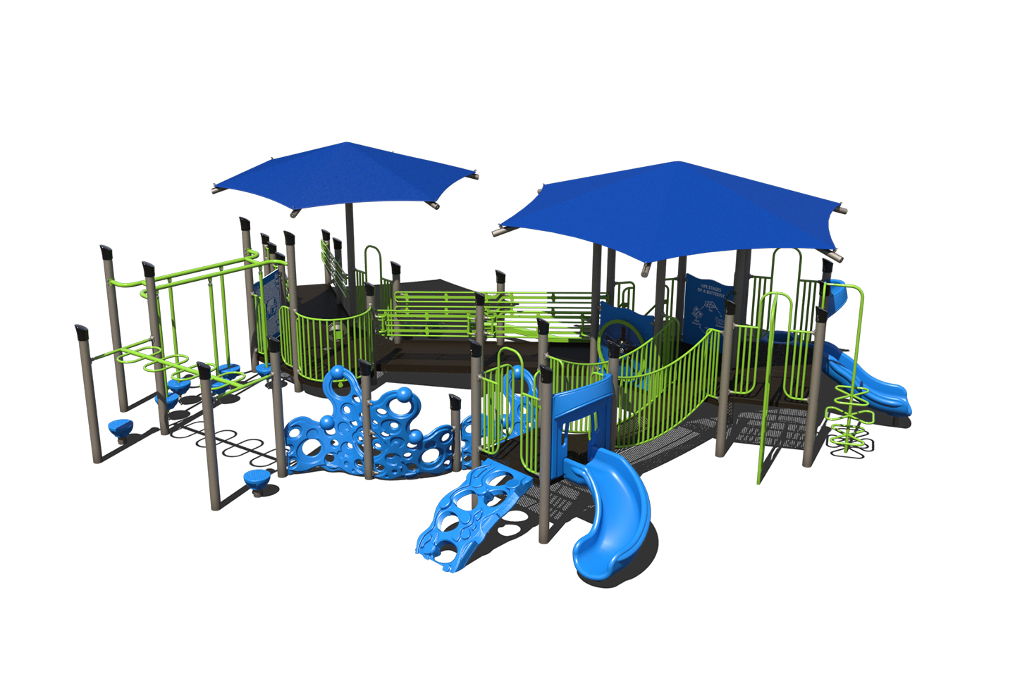 The PS5-73558 makes a great addition to any school or park. This inclusive playground is designed with a wide ramp and integrated shade. Children ages 2-5 of all abilities are able to play together on this structure.